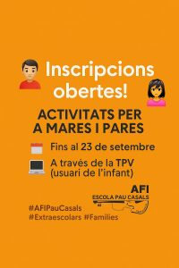 Des de l’AFI (Associació de Famílies d’Infants) de l’Escola Pau Casals creiem fermament que la implicació directa de les famílies dins l’estructura del centre educatiu és molt beneficiosa. Aquesta participació afavoreix una educació de qualitat i enforteix el vincle entre l’escola i la vida familiar.